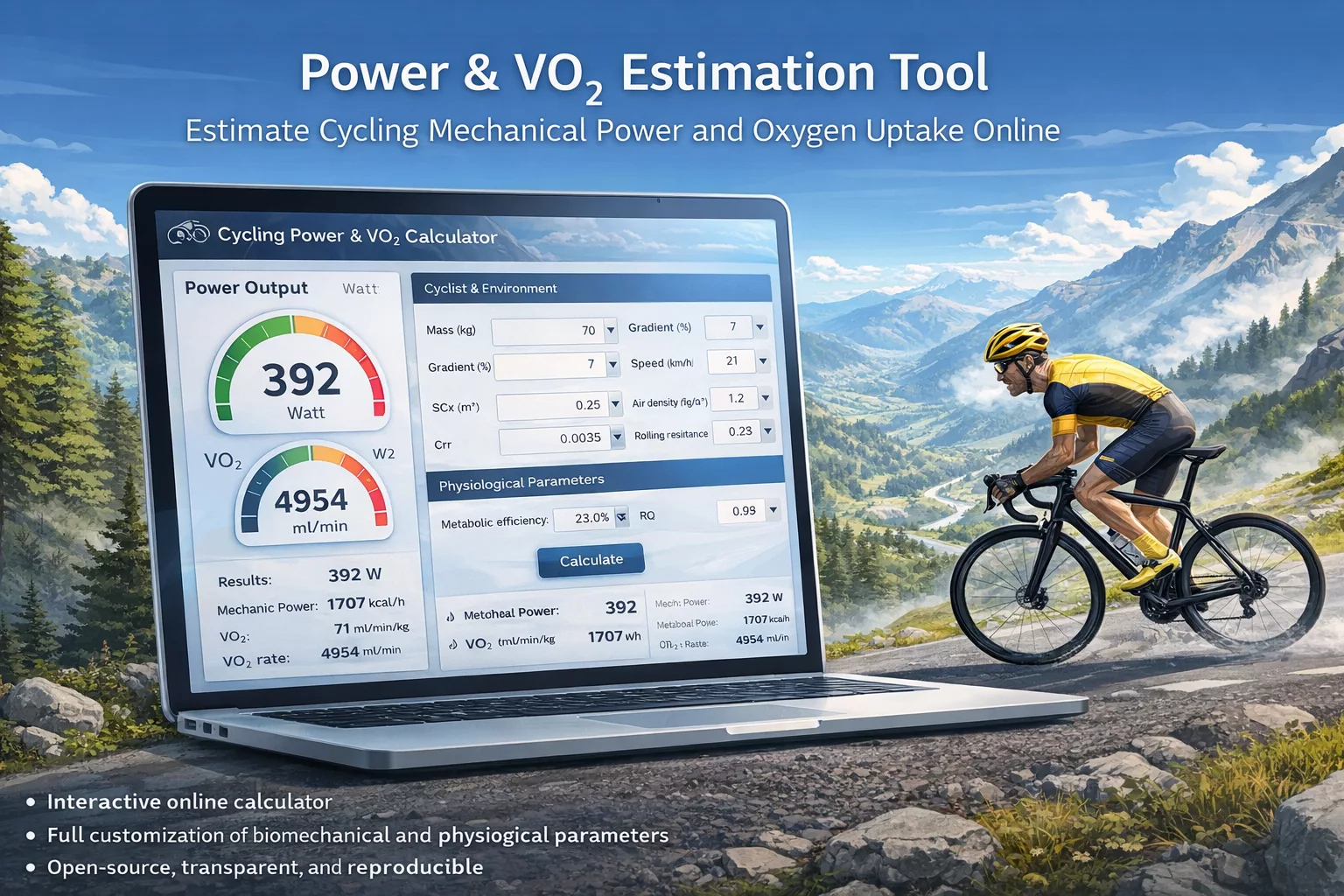 Le rapport entre le VO2max (débit maximale de consommation d’oxygène) et la puissance repose sur des lois de biologie énergétique élémentaire. La consommation d’un litre d’oxygène aboutit à la consommation de 5 kcal, ou 21 kilojoules.